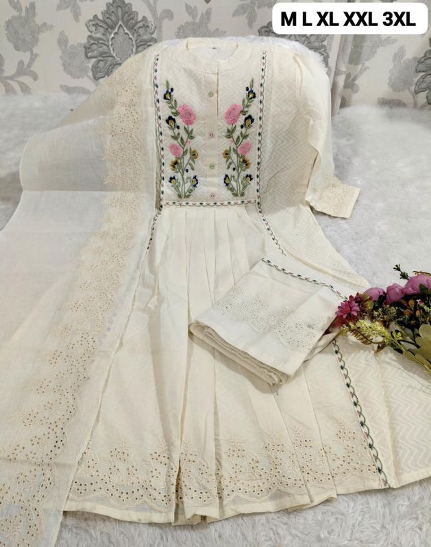 Cotton Dobby Self Zikzak ( lapet ) Shiffli Kurti With Pant With Stall Dupatta